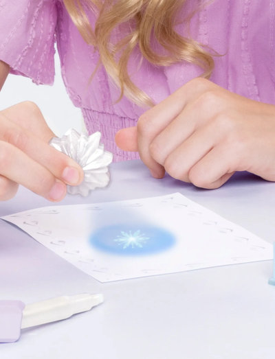 Create your own Disney Elsa-inspired designs and keep them safe in your Icy Magic Journal, part of the Icy Magic Collection. Imagine you have the power to create and control ice and snow, just like Elsa. Touch the snowflake on your journal and it magically lights up like blue ice and makes crackly freezing sounds. Write secret wishes with the invisible ink marker and reveal them with the magical snowflake! Then lock your journal and hide the key to protect the secrets of your icy kingdom.