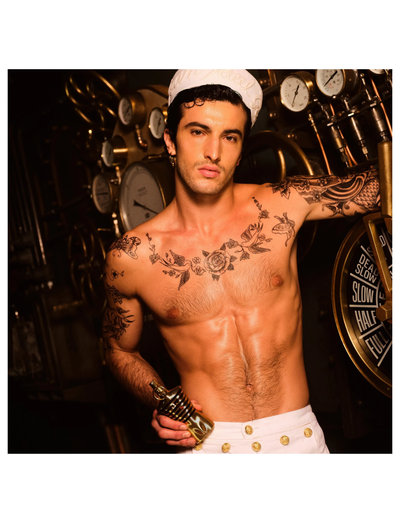 Låt oss tillsammans beundra den starka och djärva torson klädd i skimrande guld. Flakongens metalliska yta framhäver den imponerande kroppen och de bruna ränderna på sjömanströjan berättar historien om Gaultiers ikoniska sjömän. Under solens varma strålar tar äventyret aldrig slut. Gaultier har lyckats fånga den sorglösa och passionerade känslan av sommar, perfekt för alla tillfällen och årstider.