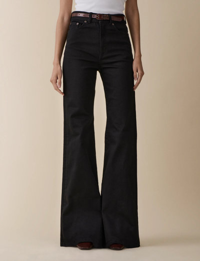 Omfamna en retrovibe med dessa superutsvängda jeans, en modern tolkning av 70-talets silhuett. Designade med en superhög midja och ett utsvängt ben som börjar mitt på låret, de har också en extra lång benlängd. Den speciella stretchblandningen säkerställer en smickrande form som håller.