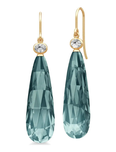 Dessa eleganta droppörhängen har en slank och graciös silhuett. En handskuren, rosenslipad päronformad briolett svänger försiktigt och fångar ljuset med en mjuk briljans. De är tillverkade av 22 karats guldpläterat 925 sterlingsilver och är gjorda av återvunna metaller. En ovalslipad, vit cubic zirconia, etiskt framtagen och noggrant handsatt, kröner varje smycke. De är avslutade med en satinpolerad fransk krok för komfort och elegans. Perfekt för vardagsbruk eller speciella tillfällen, och de erbjuder en tidlös blandning av skulptural elegans och subtil kraft.