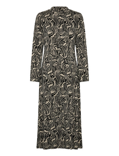 Denna mönstrade klänning är tillverkad av ren bomull och har en bekväm och smickrande passform. Med långa, raka ärmar och en liten krage är denna klänning idealisk för både vardagsbruk och festliga tillfällen.