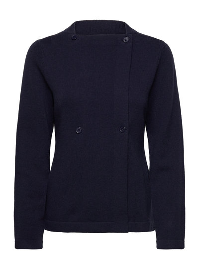 Denna stickade cardigan är tillverkad av mjuk lamull och har en smickrande omlottdesign. Den knäpps med knappar framtill, har en figurnära silhuett och slutar vid höften, vilket gör den till ett mångsidigt och bekvämt lager.