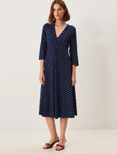 Denna midiklänning är designad med mångsidighet i åtanke och passar både för vardagsbruk och mer formella tillfällen. De trekvartslånga ärmarna och midilängden skapar en sofistikerad och tidlös silhuett. Rynkningen under v-ringningen framhäver midjan och bysten på ett vackert sätt och ger en smickrande passform. Tillverkad av mjuk viskos för komfort och stil.