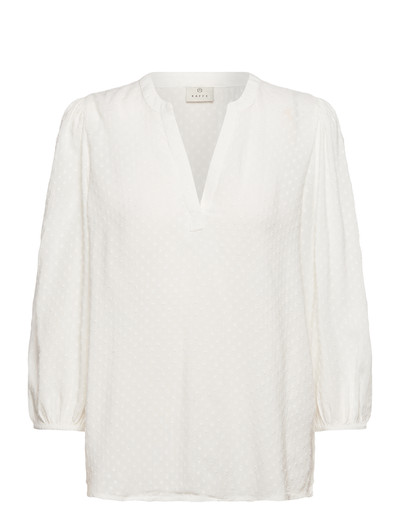 Denna blus har en subtil texturerad finish som ger en raffinerad look. Designen har trekvartsärmar och en elegant V-ringning, vilket gör den till ett mångsidigt tillskott i varje garderob.