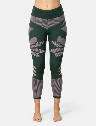Dessa prestandabyxor är tillverkade av 100 % merinoull och har kroppskartläggningsteknik. Den delvis sömlösa konstruktionen integrerar stödjande struktur och ventilation vid midja, knän och bak. Den breda linningen ger massor av stretch samtidigt som den håller formen. Designad för kvinnor som vill se lika bra ut som de presterar.