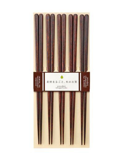 Set med fem par ätpinnar med klassiskt japanskt mönster. Produkterna är tillverkade i Japan av trä med klassisk japansk Urushi-lack. Tål ej maskindisk.
