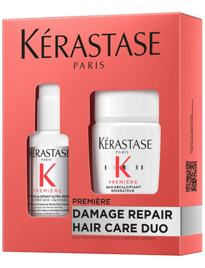 Upptäck din nya hårvårdsduo! Detta Kerastase Discovery Set innehåller alla dina Kerastase-favoriter - i resestorlek. Perfekt för dig själv eller som en gåva till någon som uppskattar lyxig och effektiv hårvård. Detta set innehåller: Première Concentré Décalcifiant 45 ml, Première Bain Décalcifiant 80 ml och Première Masque Restructurant 75 ml. Concentré Décalcifiant Ultra-Réparateur från Kérastase är en dubbelverkande, reparerande och kalkavlägsnande hårbehandling, utvecklad för skadat hår som används före schamponering. Avlägsnar kalk och stärker håret så att det känns starkare, slätare och ser glansigare ut – som om det vore förnyat. Bain Décalcifiant Réparateur från Kérastase är ett kalkavlägsnande och reparerande shampoo för skadat hår. Ett fylligt, dubbelverkande shampoo som verkar inifrån och ut för att avlägsna kalk, stärka och reparera skadat hår. Rengör skonsamt hårbotten och hår samtidigt som kalkrester avlägsnas.