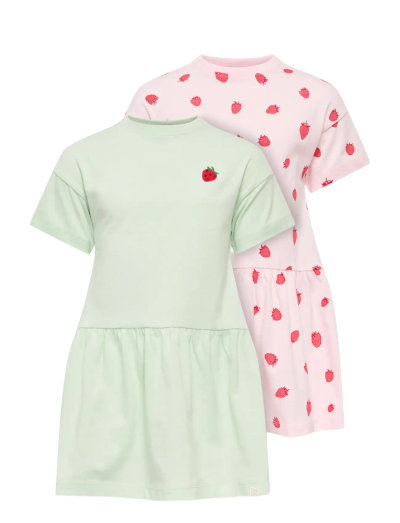 Denna klänning är tillverkad av mjuk och stretchig jersey, vilket garanterar komfort hela dagen. Perfekt för lek eller fester, den har korta, nedhasade ärmar och en klassisk O-ringning. Den lösa passformen möjliggör enkel rörelse, medan gummitrycket ger en taktil känsla. En mångsidig klänning för varje ung trendsättares garderob.