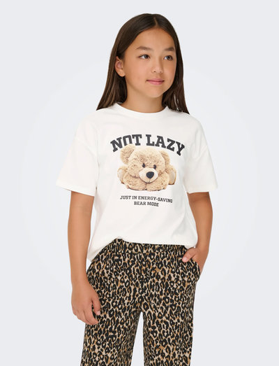 Denna t-shirt har en klassisk silhuett med korta ärmar och ett lekfullt tryck. Den är ett bekvämt och avslappnat alternativ för vardagsbruk.