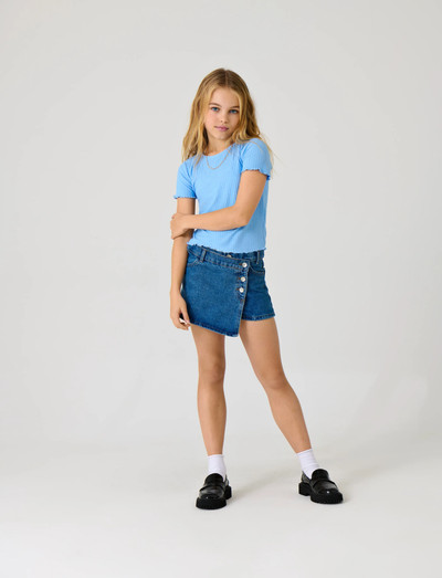 Knäppning och framfickor ger denna söta kjol en fin detalj. Den är tillverkad av mjuk bomull och har bälteshällor för att kunna använda accessoarer och är perfekt för både vardagsbruk och speciella tillfällen. Kombinera den med en t-shirt och sneakers för en sportig look.