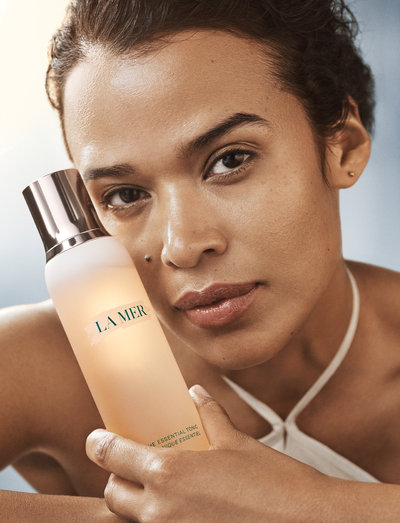 Efter rengöring, mätta en bomullsrondell och svep över ansikte och hals. Följ upp med din La Mer-rutin.