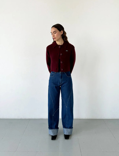 Wide fitDessa jeans i denim har en hög midja och en smickrande, bred benmodell som ger en stilren silhuett. Designen har unika, böjda sömdetaljer både fram och bak, vilket ger en intressant visuell effekt. De har även praktiska framfickor och en uppvikt nederkant för en modern finish. Stängs med dragkedja och metallknapp fram.