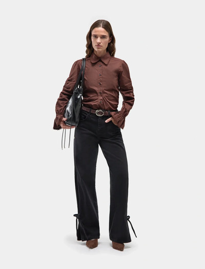 Med en smickrande hög midja och avslappnad passform erbjuder dessa jeans både komfort och stil. Den raka benmodellen förstärks av justerbara rosetter i nederkanten, vilket ger en touch av individualitet till detta mångsidiga plagg.