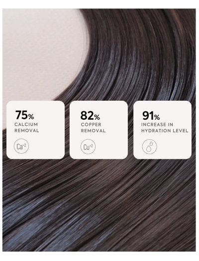 Neutralization and elimination of build-up of metals such as copper and hair minerals such as calcium, present in hard water.