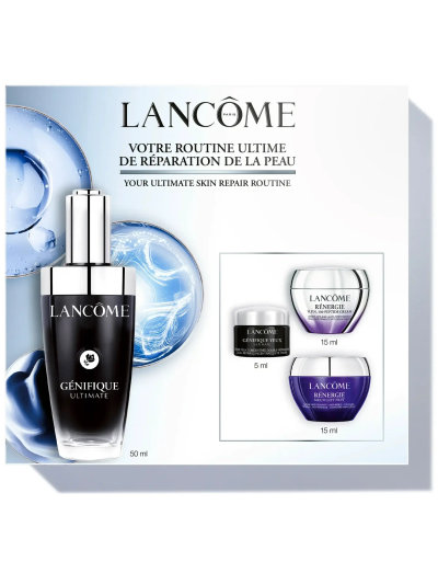 Lancôme Génifique Day Routine Set kombinerar banbrytande reparationsvetenskap med en lyxig daglig hudvårdsrutin. Setet innehåller Génifique Ultimate Serum, dagkräm och ögonkräm, formulerade med Beta Glucan-CM, hyaluronsyra, lakritsextrakt samt sju pre- och probiotiska fraktioner. Denna kraftfulla kombination påskyndar hudens reparation, minskar rodnad, förbättrar släthet och bekämpar tidiga tecken på åldrande. Den förbättrar hudens lyster, fasthet och allmänna kondition och passar alla hudtyper, även känslig och behandlad hud. Med en precisionspipett och ett påfyllningsbart format ger denna dagliga rutin ett högpresterande resultat, samtidigt som den garanterar komfort och enkel applicering.