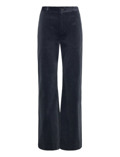 Dessa byxor är tillverkade i sammetstyg och har en smickrande hög midja och en snygg, utsvängd silhuett. De har bälteshällor, en dragkedjegylf med knäppning och en specialutvecklad knapp med logotyp. Den invändiga knappen säkerställer en bra passform.