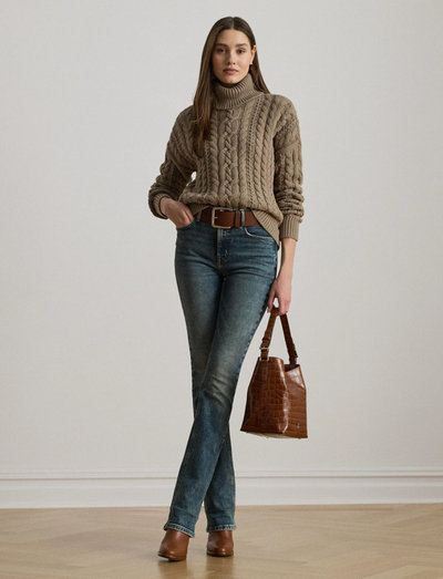 Uppgradera din kallvädersgarderob med denna kabelstickade tröja. Den tidlösa designen har en mysig polokrage och långa ärmar, perfekt för lager-på-lager eller att bära som den är.