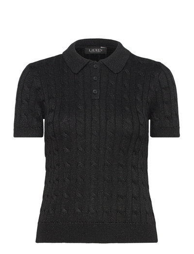 Uppgradera din garderob med denna kabelstickade tröja, som har en metallisk finish för en touch av skimmer. Den klassiska polokragen och de korta ärmarna ger en raffinerad men bekväm passform, vilket gör den till ett mångsidigt plagg för olika tillfällen.