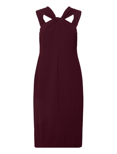 Denna klänning är designad med en unik twist-frontdetalj och ger en sofistikerad silhuett. Crepe-tyget faller vackert och säkerställer en smickrande passform för alla speciella tillfällen. Knälängden gör den mångsidig för både dagsevenemang och kvällsfester.