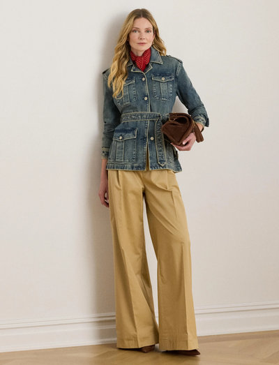 Perfect for transitional dressing, this version of the field jacket unites a lightweight denim construction with surplus-inspired design details, including buttoned shoulder epaulets and patch pockets. A belted waist with a faux leather–wrapped buckle enhances its streamlined silhouette.Straight fit. Intended to hit at the lower hip.Size medium has a 28.25" body length and a 32.75" sleeve length. Body length and sleeve length are taken from the center back of the neck. Sleeve length changes 0.25" between sizes.Notch collar. Buttoned placket. Metal buttons custom-developed with a "Lauren Ralph Lauren" logo. "LRL Ralph Lauren"–debossed leather patch at the interior center back of the neck.