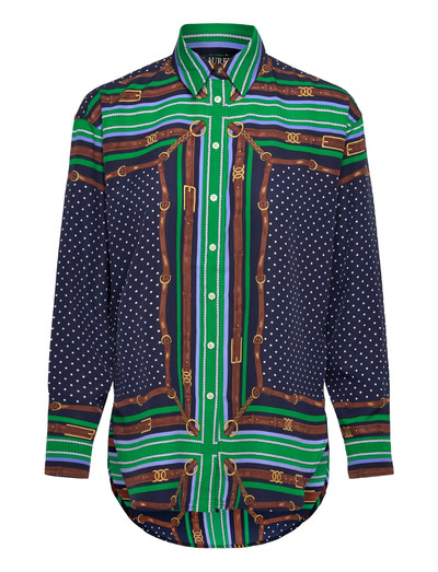 En avslappnad silhuett definierar denna långärmade skjorta, kompletterad med ett allover-mönster. Designen har en knappstängning fram och en rundad fåll, vilket ger både stil och komfort.