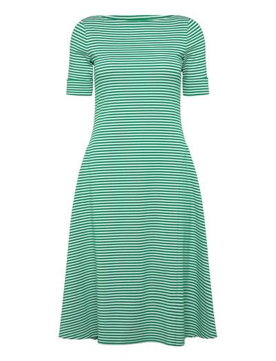 En klassisk silhuett får en lekfull uppdatering med de genomgående ränderna på denna midiklänning. Tillverkad av stretchig bomull, erbjuder den både komfort och en smickrande passform. Den ribbade texturen ger en subtil detalj, vilket gör den till ett mångsidigt val för olika tillfällen.