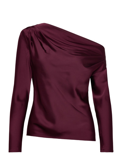 Denna blus är tillverkad av slät satin charmeuse och har en lyxig känsla och ett elegant fall. Off-shoulder-designen ger en touch av modern elegans, vilket gör den perfekt för kvällsevenemang eller speciella tillfällen. De långa ärmarna ger täckning samtidigt som de behåller en raffinerad silhuett.