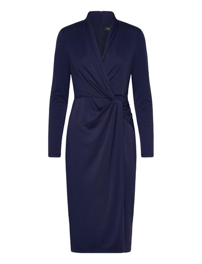 Denna klänning är tillverkad i matt jersey och har en smickrande omlottdesign. Knälängden gör den perfekt för kvällsevenemang och ger en raffinerad och elegant look.