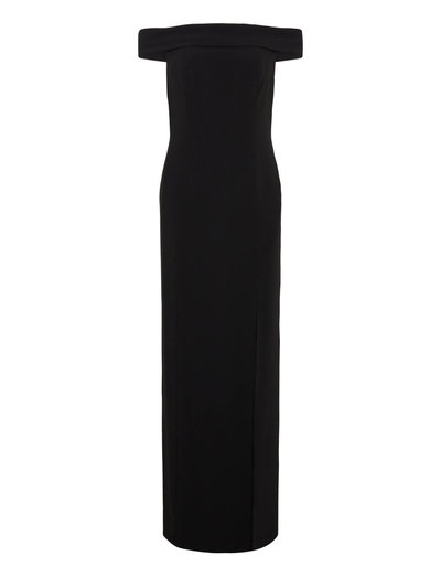 Denna klänning har en elegant off-shoulder-design som ger en sofistikerad silhuett. Den långa maxilängden och den diskreta slitsen förstärker klänningens eleganta utseende, vilket gör den perfekt för kvällsevenemang.