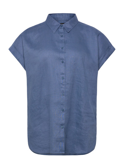 Korta dolmanärmar med upprullade muddar ger denna linneskjorta en modern touch. Designad för en avslappnad passform, är det en lättburen basvara som slutar vid höften. Den har en spetsig krage och en knappslå.