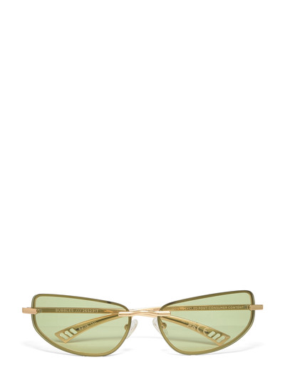Den slanka, vinklade wraparound-silhuetten ger dessa kantlösa solglasögon ett modernt uttryck. De böjda glasen kontrasteras av skarpa linjer, vilket ger cat eye-bågen en futuristisk finish. Justerbara näskuddar säkerställer en bekväm och skräddarsydd passform, medan de smala metallskalmarna har utskurna flaggstripelogotyper.