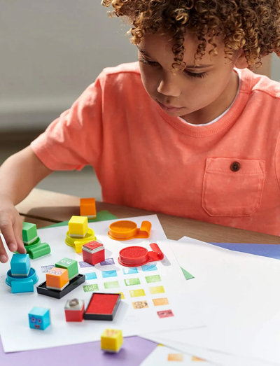 3+ ÅrWith the reusable stamps and washable inks in the Numberblocks Stampoline Park Activity Set from Learning Resources, children can make the Numberblocks One to Ten, and create their own adventures based on the popular Numberblocks Stampoline Park episode. This 32-piece activity set has 12 ink pads, 10 with Numberblocks unique colours, and 2 large ink pads (red and black) to create facial features. Stamps are easy to wipe clean, and everything stores neatly inside the convenient storage box with carry handle, so the stamps and ink pads are always ready for number magic with the Numberblocks.