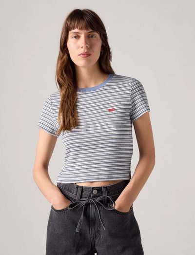 Den här randiga t-shirten är en klassisk garderobsklassiker. Den har en rund hals och korta ärmar. T-shirten är gjord av ett mjukt och bekvämt tyg, vilket gör den perfekt för vardagsbruk.