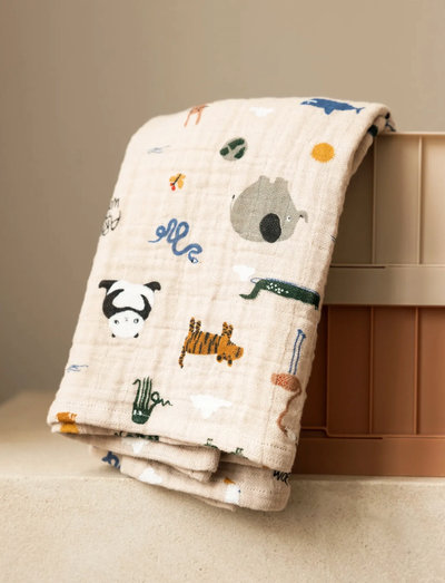 Detta set med två muslinfiltar har en mjuk och luftig väv, perfekt för att linda eller rengöra. Det lätta tyget är skonsamt mot känslig hud och erbjuder mångsidig användning. Varje filt är prydd med ett subtilt och lekfullt tryck.