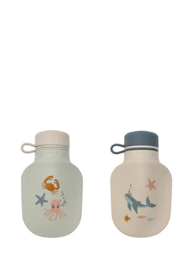 Detta set innehåller två snygga och praktiska smoothieflaskor. De är perfekta för att hålla drycker kalla och uppfriskande. Flaskorna är gjorda av hållbara och säkra material, vilket gör dem idealiska för daglig användning.