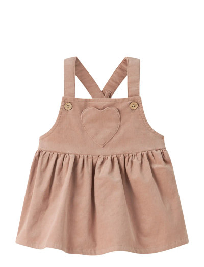 Denna sparkdräkt är tillverkad av glänsande manchester med en sammetslen ribbad textur. Den är designad med komfort och praktisk användning i åtanke och har subtila nötningar som ger en lätt använd look. Lägg märke till den söta hjärtdetaljen framtill.