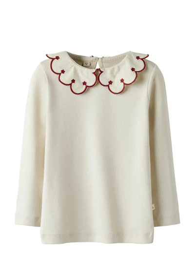 Denna långärmade tröja är tillverkad i mjuk jersey, vilket garanterar en bekväm känsla och obegränsad rörelsefrihet. Den har en charmig O-hals, knappstängning och en härlig scallop-detalj. Den smala passformen gör den idealisk för lager-på-lager eller att bäras som den är.