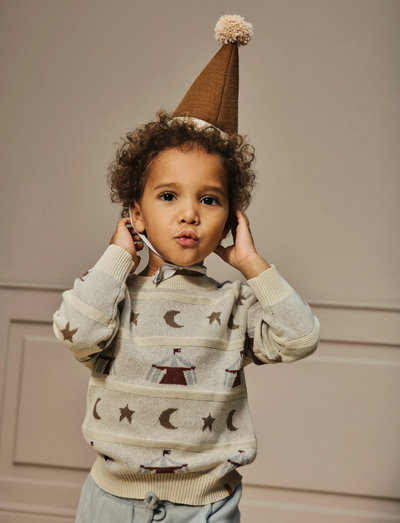 Denna stickade tröja har ett detaljerat jacquardmönster som ger en strukturerad textur och en tidlös look. Den normala passformen säkerställer bekväm användning, medan de ribbade muddarna och fållen ger en åtsittande finish. Denna långärmade, O-ringade stickade tröja är ett idealiskt tillskott till varje barns garderob.