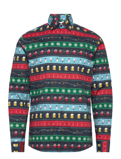 Loose fitFestlig stämning möter klassisk stil i denna långärmade skjorta, prydd med ett allover-tryck av julikoner. Buttondown-designen ger en smart-casual look, perfekt för säsongens sammankomster.