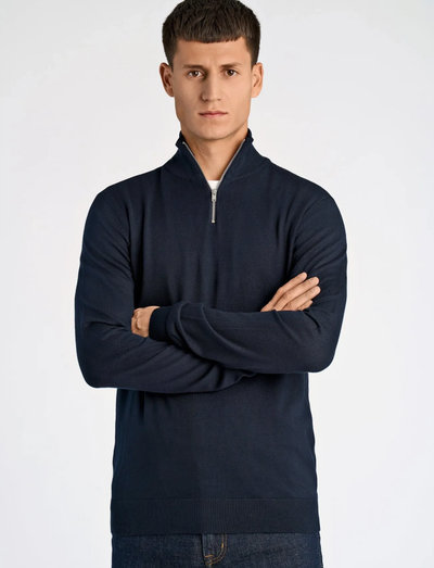 Den här halv-zip-tröjan är ett snyggt och bekvämt val för alla tillfällen. Den har en klassisk design med en halv-zip-stängning och en hög hals. Det mélange-stickade tyget är mjukt och andningsbart, vilket gör den perfekt för lager på lager.