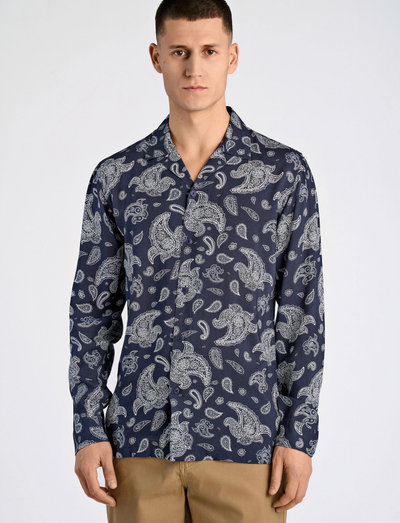 Kubansk/fritidskrageDen här Lindbergh-skjortan är ett snyggt och bekvämt val för alla tillfällen. Den har en klassisk knapp-down-design med en avslappnad passform och ett paisley-tryck. Skjortan är gjord av viskos, som är ett mjukt och andningsbart tyg. Den är perfekt för lager på lager eller att bära på egen hand.