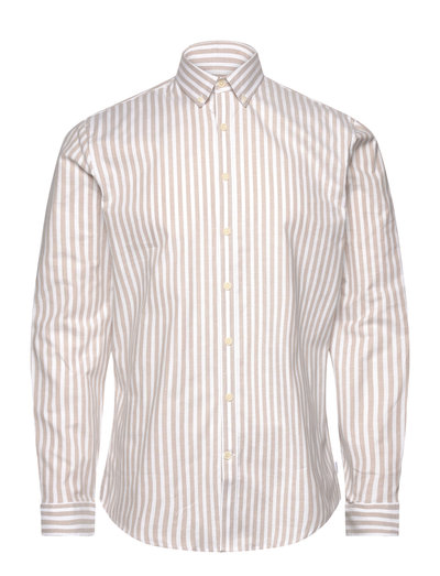 Button down-krageDenna randiga Oxford-skjorta är tillverkad med en touch av stretch, vilket ger både komfort och en klassisk look. Den långärmade designen gör den till ett mångsidigt val för olika tillfällen. Den raffinerade texturen och det subtila mönstret ger en touch av sofistikering till varje outfit.