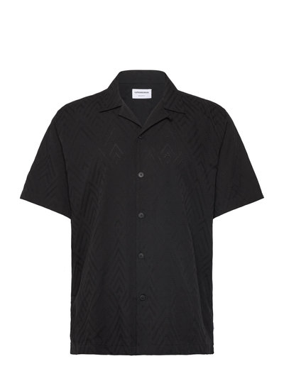 Kubansk/fritidskrageDen här Lindbergh-skjortan är ett snyggt och bekvämt val för alla tillfällen. Den har ett texturerat viskosmaterial och en klassisk knappnedslagen design. Skjortan har en avslappnad passform och korta ärmar, vilket gör den perfekt för varmare väder.
