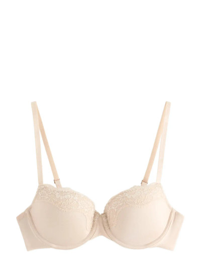 A comfortable balconette bra with fine lace at the front, midi coverage and thin padding.