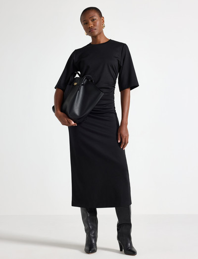 Denna midiklänning är tillverkad i mjuk jersey och har korta ärmar samt snygga rynkor längs sidorna. Det bekväma tyget faller vackert och skapar en smickrande silhuett.