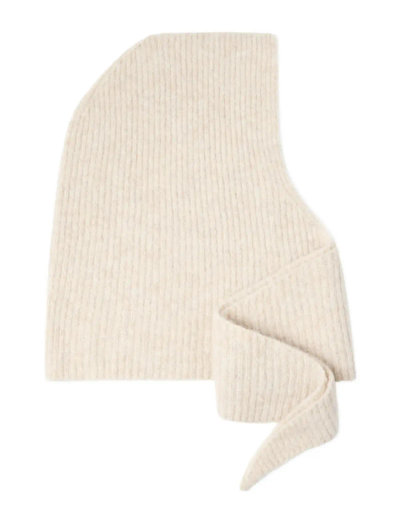 Denna stickade huva kombinerar värme och stil med sin unika triangelform. Det mjuka materialet säkerställer en bekväm passform, vilket gör den till en praktisk och fashionabel accessoar för kyligare dagar.