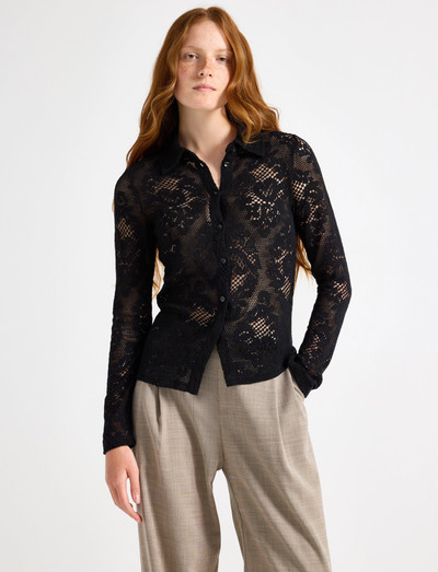 Denna långärmade skjorta är tillverkad i mjuk jersey och har ett distinkt texturerat spetsutseende. Knappdesignen ger en klassisk touch, vilket gör den till ett mångsidigt tillskott till varje garderob.