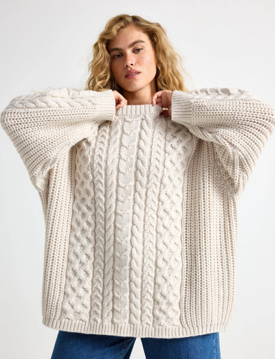 Den här stickade tröjan har en avslappnad passform som ger både komfort och stil. De långa ärmarna och den oversized modellen gör den till ett mysigt val för kyligare dagar.