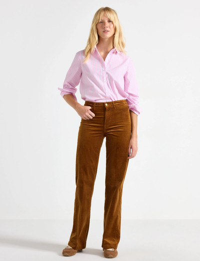 Manchestertyget ger dessa byxor en distinkt textur. Designen har en smickrande hög midja och en stilren, bred benmodell, förstärkt med veck för extra volym och ett sofistikerat fall.