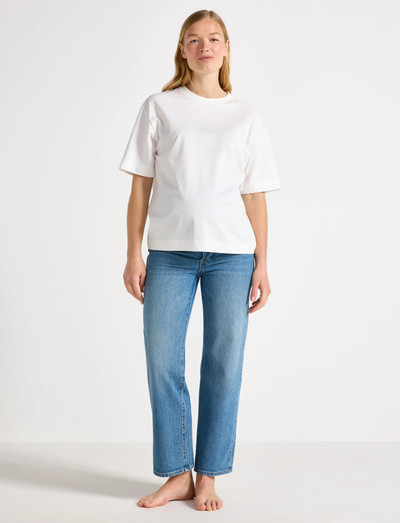 Dessa mammabyxor är designade för att anpassa sig till en växande mage och är tillverkade i bomullsdenim med lätt stretch. Den mjuka jerseypanelen ger en bekväm passform under hela graviditeten.
